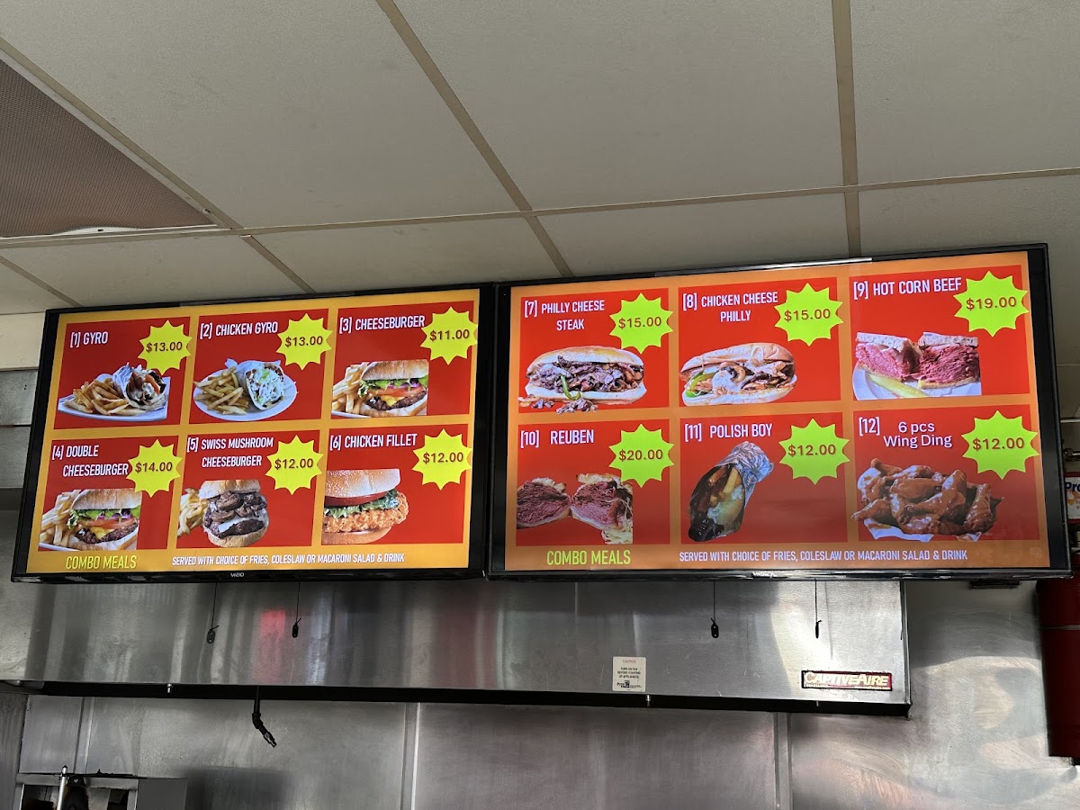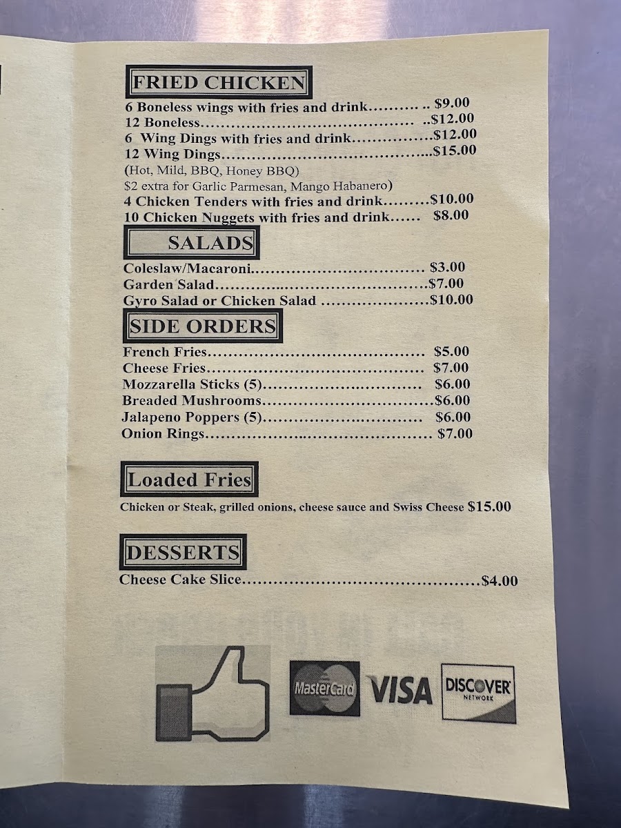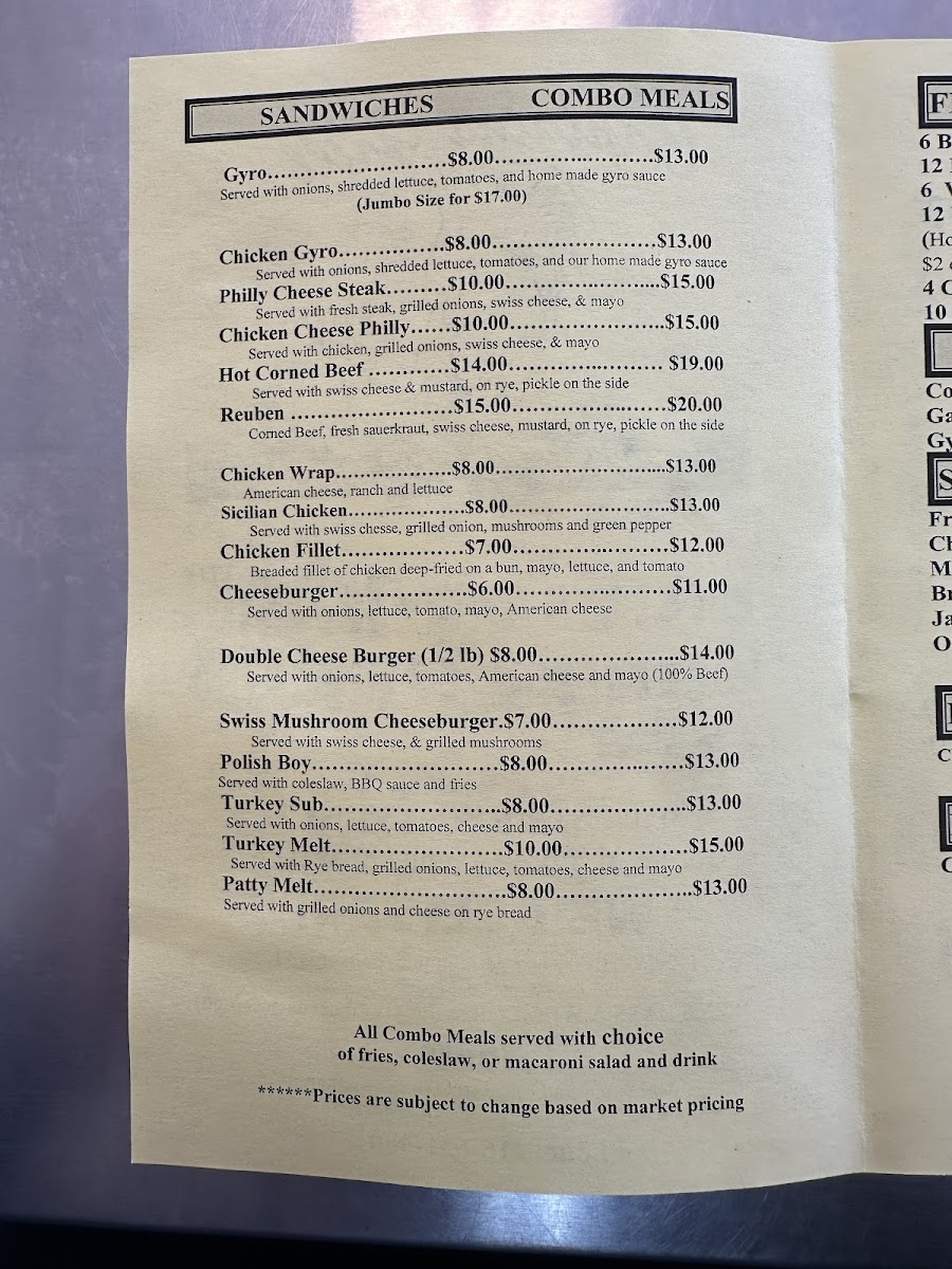 Sautéed green peppers, onions, mushrooms, and white American cheese. Includes choice of side and a drink.